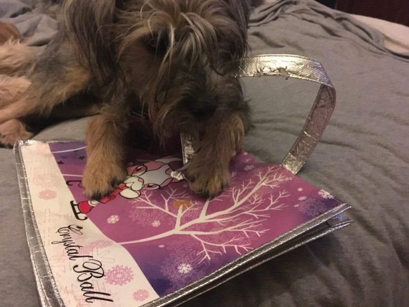 I am extremely fond of this bag, even if I did break one of its handles in my affection. Every time Human opens the door to its house, I race in and grab it. It’s my go-to grab bag. Many would disagree with me on this, but it is actually one of my favourite things to be left holding the bag.