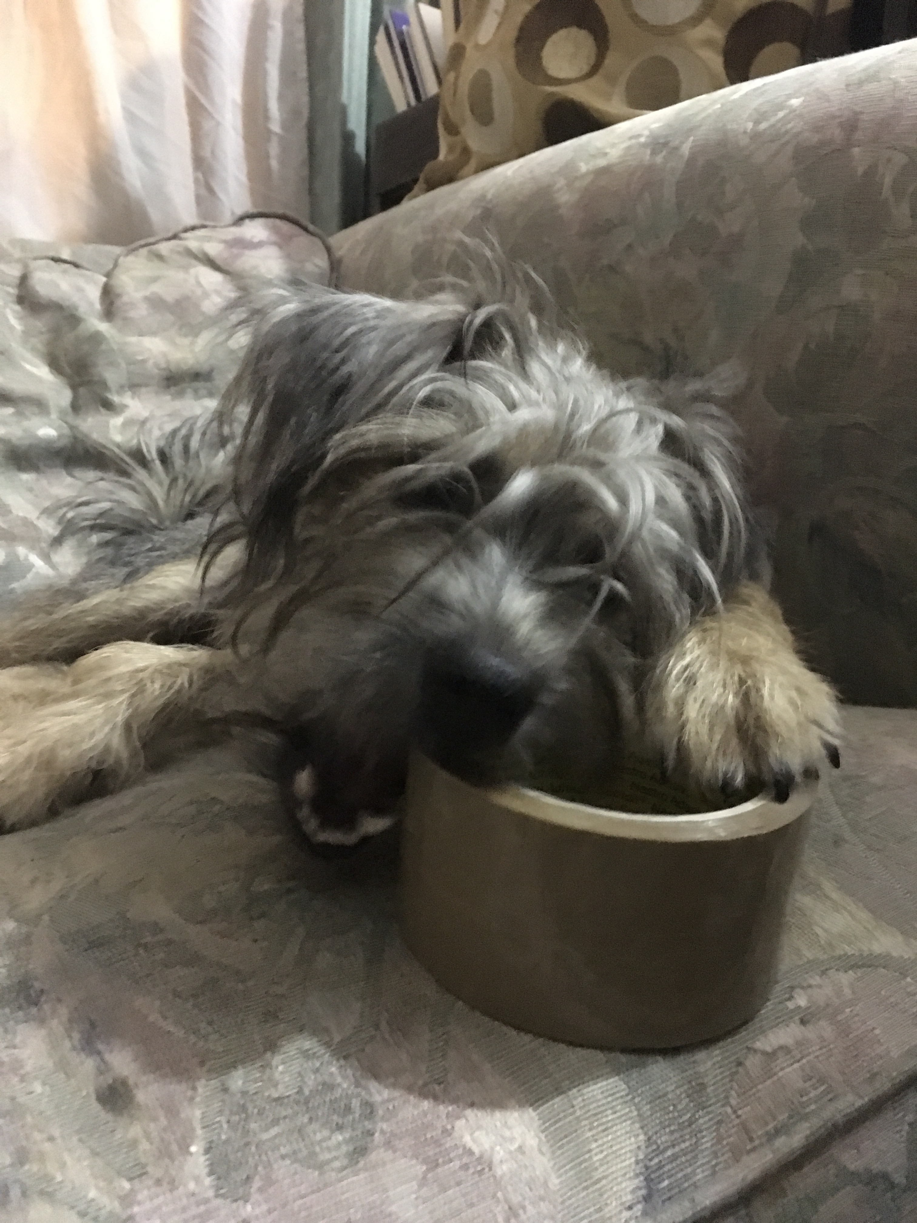 But did you know that packing tape is used in art? Human tells me there is an artist called Mark Jenkins who lives in Washington (so he maybe knows Bo and Sunny) and he makes sculptures out of packing tape and places them around the city. He’s even made one of dogs playing among the garbage cans in a city alley. So I think my love of packing tape might reveal my artistic side. I think I would like to make a sculpture. But Human always retrieves the roll before I can start unwinding it. All I have managed so far are some modest engravings.