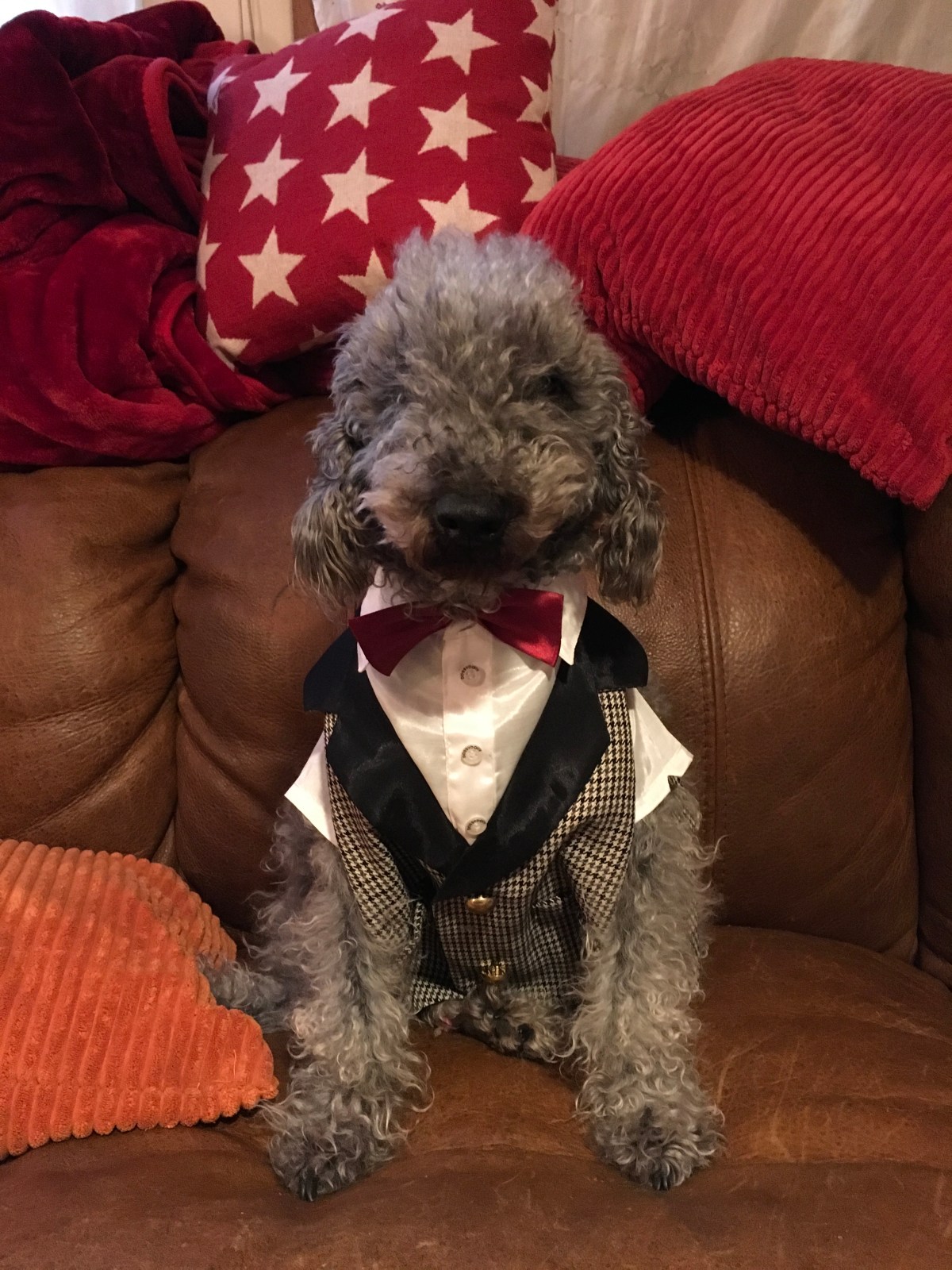 Huw has taken the classic Houndstooth jacket and added a seasonal twist, by matching his red bow tie to his soft furnishings