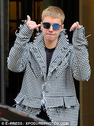 Justin Bieber, not one to be left out in the cold by Huw’s sartorial elegance, has tried to carry off the Houndstooth trend, but unfortunately he has chosen to wear one that had been apparently Jeffervesced earlier. And he has also chosen to add Honey G sunglasses and curious gangsta gestures. Oh Bieber, not even close. And you don’t even have Huw’s hair anymore! Huw wore it better!